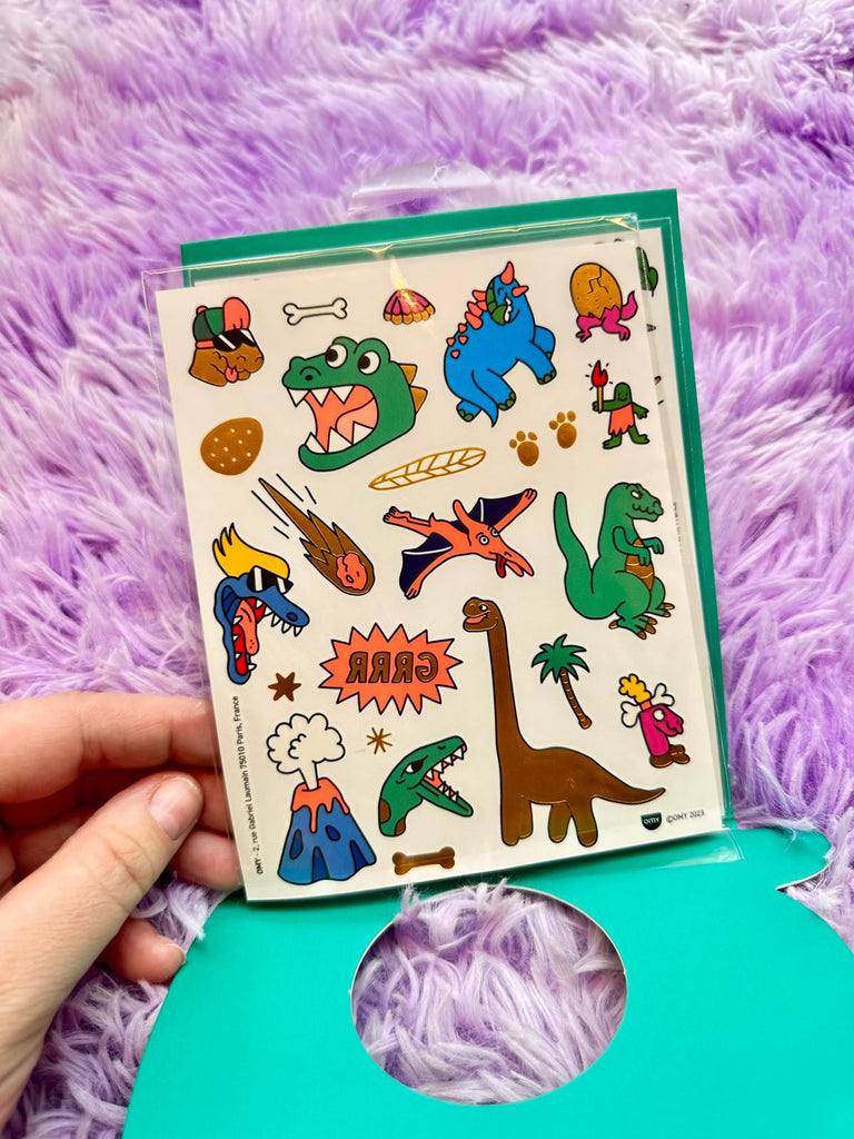 leuke dino stickers, inhoud: 75 leuke sticker, 6 leuke landschappen, 2 sticker puzzels en nog 2 dino's