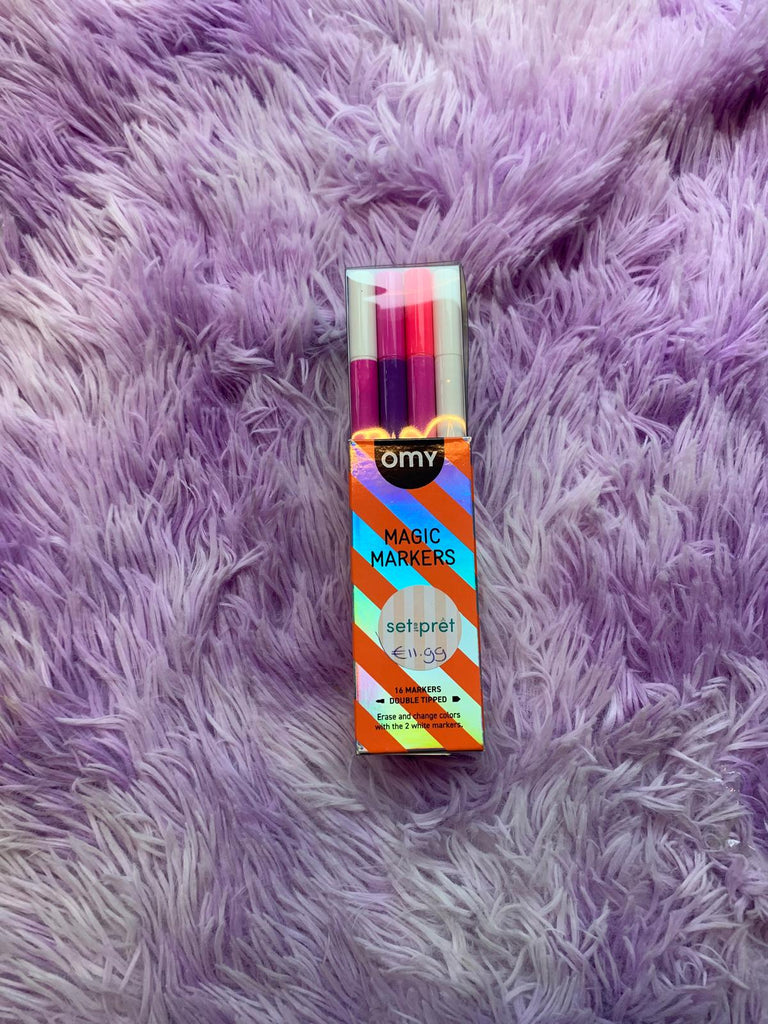 leuke magic stiften, 14 leuke kleuren stiften en 2 witte. als je met de witte stift over de kleurtjes heen gaat veranderd hij. super leuk als sinterklaas of kerstcadeautje
