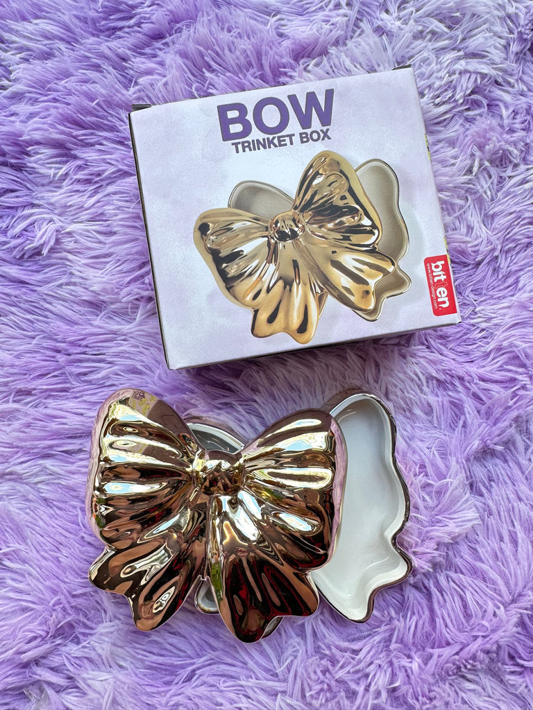 Goud strik doosje, mooi chique accessoire voor in je huis of kamer. Ook heel leuk voor de feestdagen.
