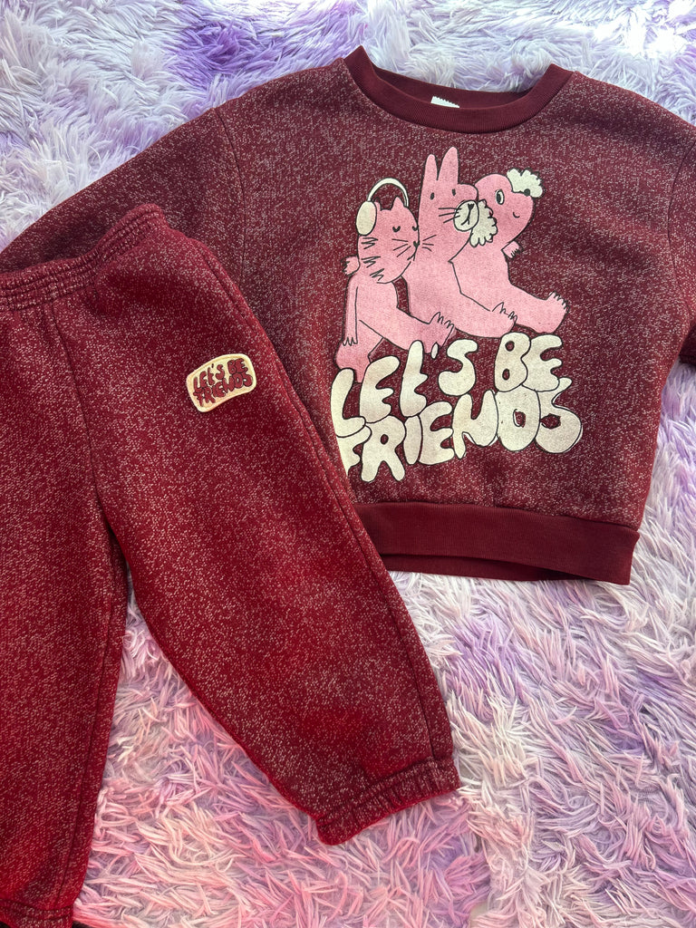 Deze set van American Vintage (mt 3 jaar, valt als 92) heeft een extra leuk nieuw leven gekregen door onze nieuwe Let’s Be Friends print.