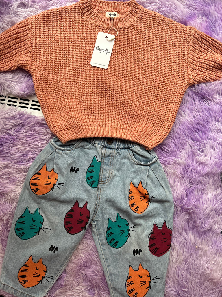 Deze set met knit van Enfantje (mt 92-98) met denim van Nunubiel (Koreaans, schatting maat 92-98) heeft een extra leuk nieuw leven gekregen door onze nieuwe Let’s Be Friends print.